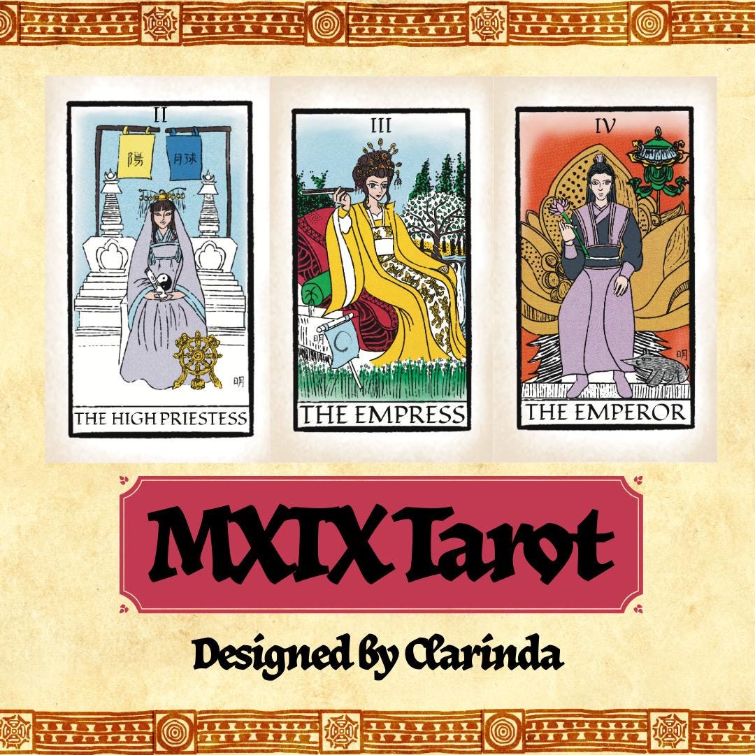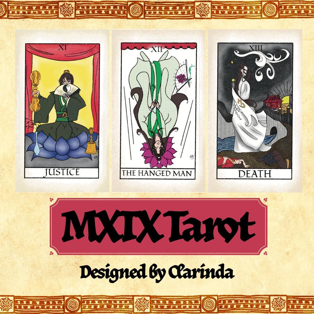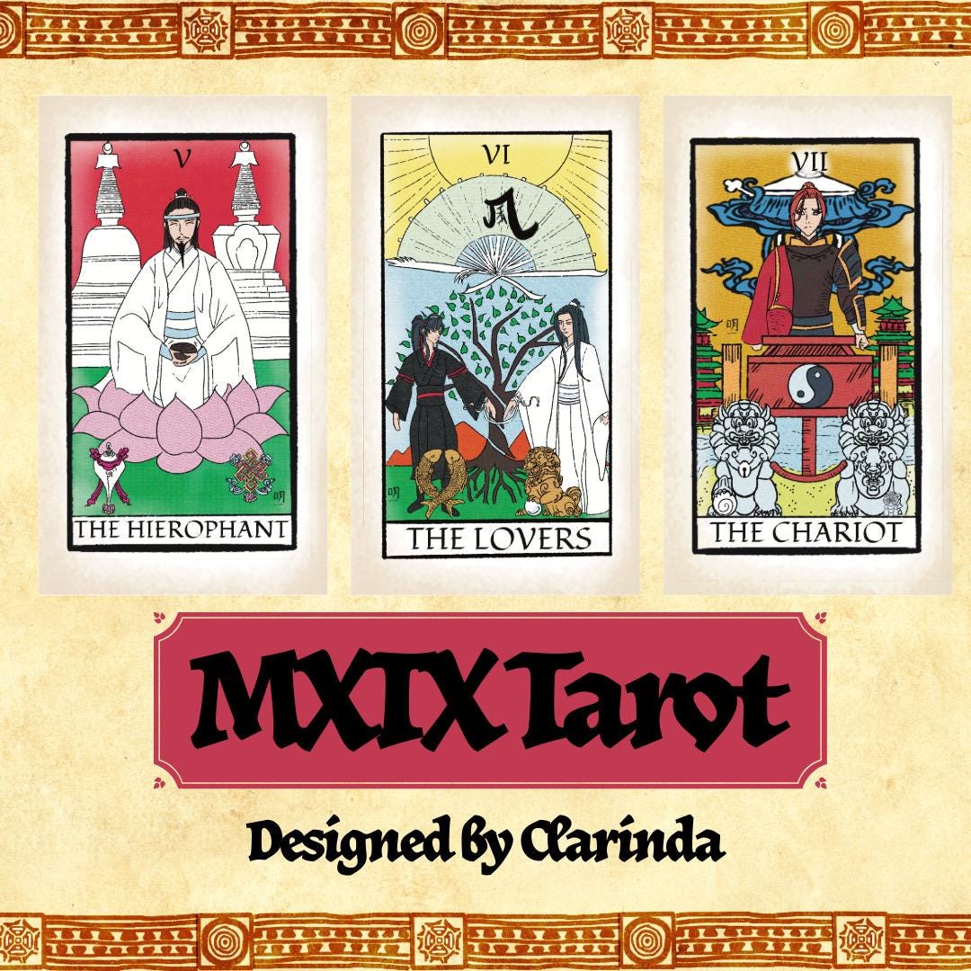 2.75” X 4.25” Smooth Tarot Card Deck (Major Arcana ONLY) using the characters from MXTX novels. Instructions and soft, drawstring bag included.